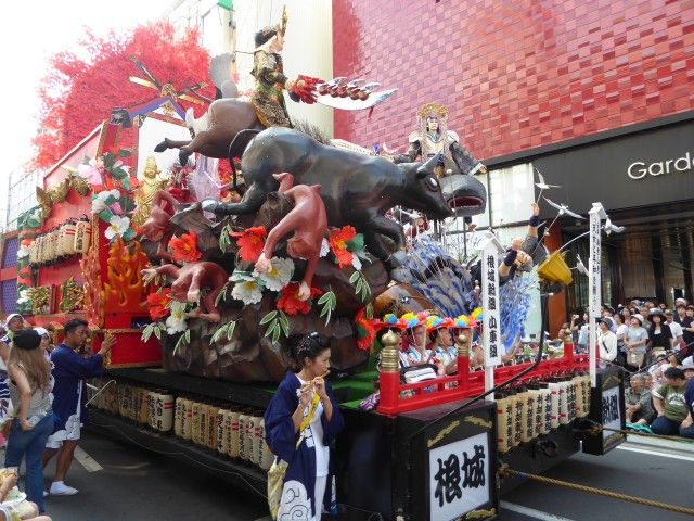 明治時代の中頃までは、江戸時代の影響を色濃く残した人形山車が使用されていました。明治20年頃から様々な飾りをつけた風流山車と呼ばれる山車が流行し、江戸時代からの伝統的な山車は衰退していきました。祭における当時の山車の位置づけは「附祭」とされましたが、明治30年代から「山車」との表記が定着するようになります。明治時代の山車の構造は、台車、岩や波などの飾り、人形の三層構造の山車となっています。