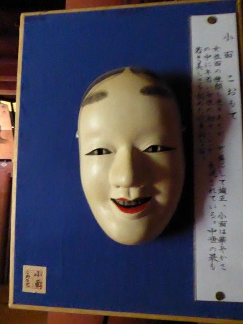 小面(こおもて)。女性面の種類も色々あるが、可憐にして端正、小面は華やかさの中に年若い女性の初々しさが、表現されている。中世の最も若き美しさを秘めた代表的な面。