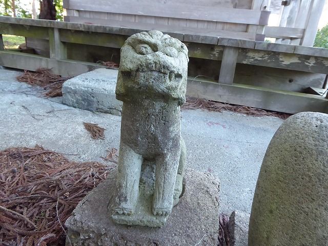 狛犬横の石は不明。
