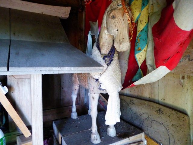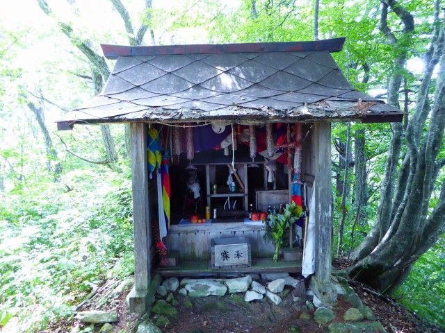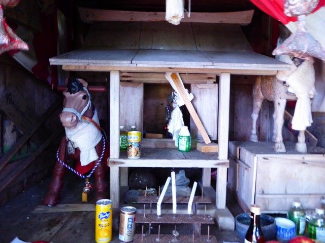 手前の小祠も馬頭観音のようです。嶽きみの鮮度を見る限り、やはり頻繁に参拝者が来ているようです。