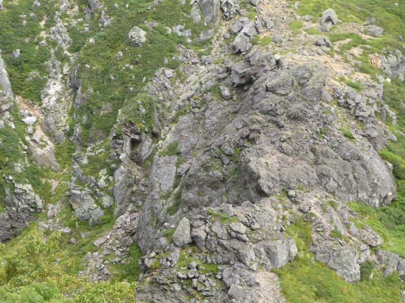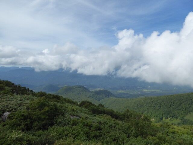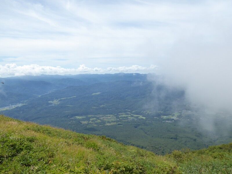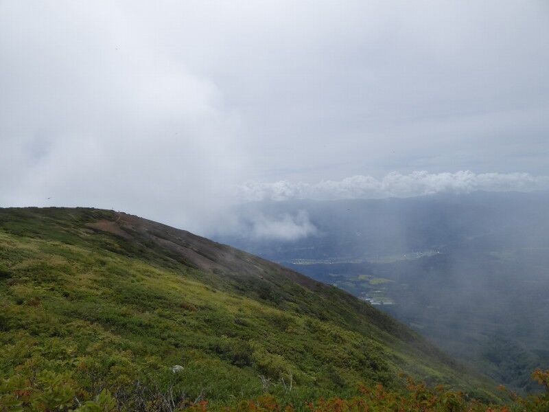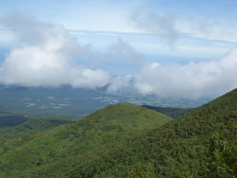 9合目の鳥の海(鳥海山)方面。8合目から9合目の鳥の海(鳥海山)まではリフトがあり、そこから40分もあれば山頂に辿り着けます。リフトは有料なので8合目から登る人も多いです。個人的な意見ですが8合目から登るくらいなら私は1合目から登ります。
