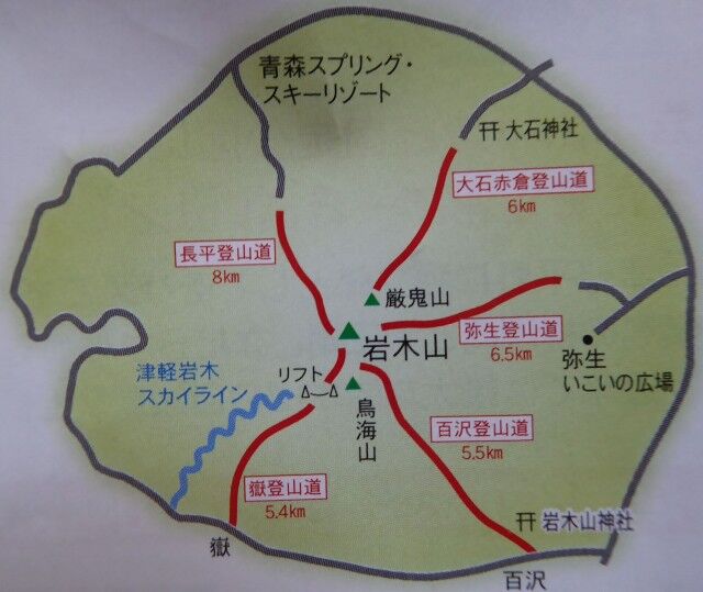 ちなみに岩木山にはいくつかの登山道がありますが、この中では嶽登山道が比較的楽なコースで初心者向きです。お山参詣は主として百沢登山道です。
