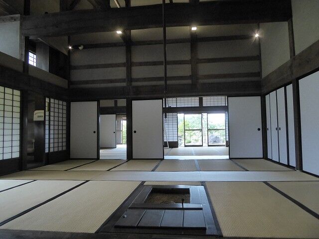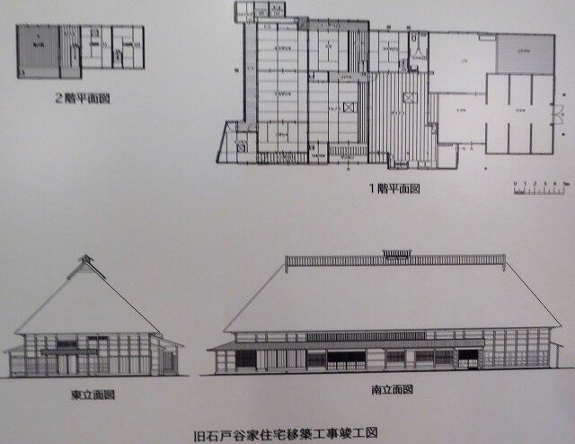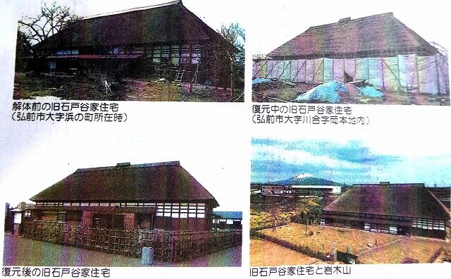 旧石戸谷家住宅(※内容がかぶるため一部抜粋)…『◎住宅の価値と特徴…(前略)1859年(安政6年)の建築記録の存在や、軒の高い構え、木材の風化の度合いなどから、江戸時代末期には建築されていたと推定される。重要文化財・旧平山家住宅(五所川原市、1769年(明和6年)建築)と間取りが類似しているものの、一部に発展した形態も示しており、また、現存する江戸時代の農家主屋としては国内最大級の規模を有するなど、大変貴重な建物である。◎展示エリアはかつてのウマヤ…(省略)◎よみがえる豪農のすまい…住宅の移築工事は2015年(平成27年)12月から、2019年(平成31年)3月までの40か月間実施された。工事では、古材を必要最低限修理・修復し、再利用するとともに、部材調査などに基づき、現代での改変箇所を復旧し、近代頃の姿に復元した。なお、地盤改良や耐震補強など、可能な限り目立たない形で、活用のための補強も行っている。◎旧石戸谷家住宅とは…(省略)』