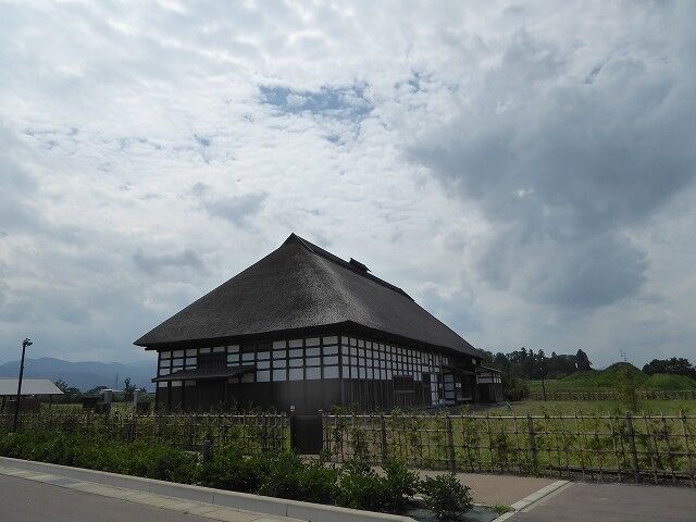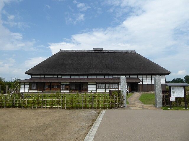 堀越城ガイダンス施設「旧石戸谷家住宅」(弘前市指定有形文化財)…『◎旧石戸谷家住宅とは…この建物は、かつて弘前市街地の北西に位置する萢中(現浜の町)に所在した、津軽を代表する豪農・石戸谷家の住宅で、木造、一部二階建、茅葺、総床面積437.63㎡(1階388.39㎡・2階49.24㎡)の規模を誇ります。1985(昭和60)年に弘前市指定有形文化財に指定され、2004(平成16)年に所有者から弘前市に寄贈されました。石戸谷家は、家伝によるとかつて鯵ヶ沢町の種里に住んでおり、その後、江戸時代の初めに萢中に移り住み、地域の開発に貢献した旧家です。藩主も立ち寄る家柄とも伝えられ、「萢中の大家」という呼び名が明治時代まで続いていたとされます。住宅は1822(文政5)年の建築と伝えられますが、その根拠は確認できていません。しかし、1859(安政6)年の建築記録が残されていることや、軒の高い構え、木材の風化の度合いなどからみて、江戸時代末期の19世紀半ばには建築されていたと考えられます。重要文化財・旧平山家住宅(五所川原市、1769(明和6)年建築)と間取りは類似していますが、一部に発展した形態を示しており、また、現存する江戸時代の農家主屋として国内最大級の規模を有するなど、大変貴重な建物です。◎移築工事について…弘前市への寄贈後、住宅の老朽化が顕著となってきたため、市は2009(平成21)年度に緊急策として建物を分解し、部材を保存しました。そして、国指定の史跡である堀越城跡の隣接地に移築して公開するとともに、堀越城跡のガイダンス施設としても整備・活用することとしました。組立工事を2015(平成27)年度から2018(平成30)年度まで、内装及び外構工事を2019(令和元)年度に実施し、2020(令和2)年4月にオープンしました。旧石戸谷家住宅は今後も、弘前藩初代藩主津軽為信の最後の居城である堀越城とともに、弘前市の新たな観光拠点として保存・活用されていきます。~設置2020(令和2)年青森県弘前市教育委員会』