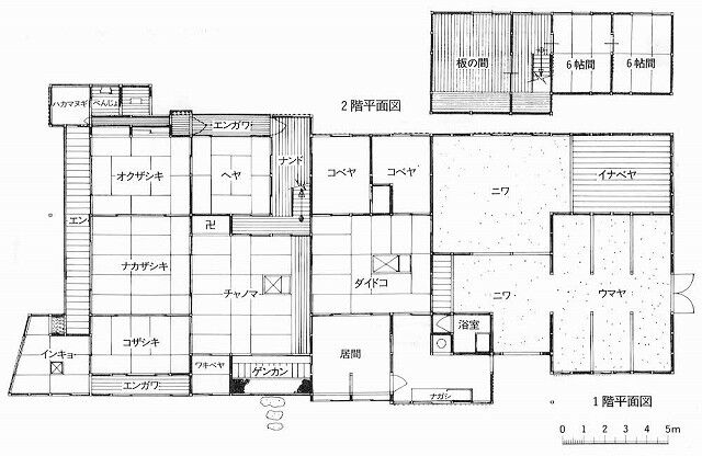 かつて弘前市浜の町に建てられていた津軽を代表する江戸時代の農家住宅。木造一部2階建、茅葺屋根の建物で、総床面積437.63㎡(1階388.39㎡・2階49.24㎡)。桁行29.59m、梁間11.45m、一部二階建、寄棟造、茅葺、南及び西・北面庇付。