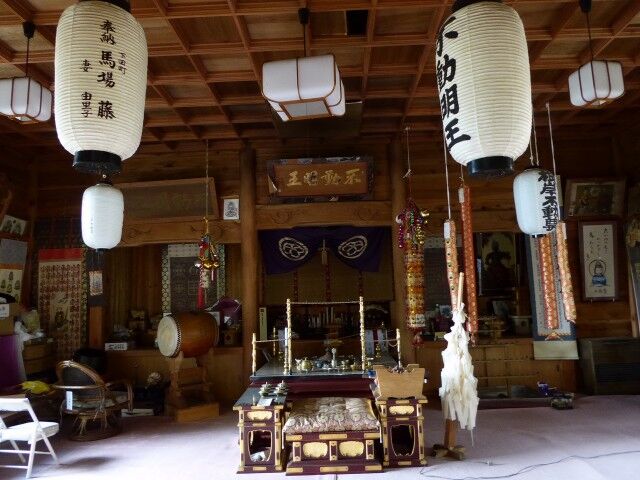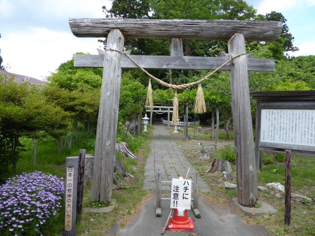 不動明王堂。御祭神は不動明王。例祭日は1月3日、3月3日、8月3日。碇ヶ関は国上寺末寺。中世の根岸館跡の区域の東端に鎮座。貞観4年、この年宇曽利山神社を勧請開基と云われる慈覚大師が、この頃当地に参り、根岸の里で休憩した時、持っていた杖が根付いたものと伝えられる大銀杏が境内にあります。この地にあった曹洞宗高雲寺は永世4年に五戸村下根岸に引き移りましたが、時のお供人であった左エ門次郎は、当根岸部落の人であったと云われています。この周辺は昔の根岸舘跡地。また、浄土宗専念寺が元亀元年に五戸村に移転建立まで、不動明王の北の丘地にあり、この時代、この周辺は当地方の聖地でした。嘉永5年の勧化帳写があり、二代別当林孫右衛門とあります。林家では昭和当初の頃まで土鼻神社の俗別当であり、不動明王社も兼ねていました。不動明王保存の幟として「槌鼻大明神(天保15年9月)」、「正一位槌鼻大明神(安政7年6月)」、「正一位土鼻大明神(安政7年6月)」、「土鼻大明神(弘化3年6月)」、「不動明王(弘化3年7月3日)」、「正一位土鼻大明神(安政7年6月)」、「土鼻大明神、不動明王(嘉永4年6月)」があります。三浦琢二家文書には「不動神社ハ根岸村ノ東部ニアリ。不格社ニシテ土人オ不動様ト称ス。祭神ハ不動明王ニシテ毎年正月三月七月ノ三日ヲ御縁日トナシ近在ノ老若参詣スルモノ多シ。不動神社ノ由緒来歴ニ関シテハ確カナル旧記ノ存スルモノナク其ノ詳細ヲ知ルヲ得サルモ甚ダ古キ創建ナルハ各種ノ事情ニヨリテ(各種ノ事情トハ一ニハ一千年以上ノ生命ヲ有スル銀杏ノ今尚生存セル事、一ニハ根岸ナル名称ノ考証的見解トヨリナリ俗別当林家ノ古キ事ニヨリテ)想像スルヲ得。左ニ村越清太郎氏蔵ニ係ル勧化帳ヲ抄録シテ同神社ノ縁起ニ代フ」とあります。そして勧化帳の内容です…『五戸通北郡百石村鎮守槌鼻青竜大明神本尊不動明王之儀ハ人皇四十五代聖武天皇之御宇天平年中ヨリ同四十七代慶帝天皇御宇天平宝字年間之頃慈覚大師大日本国中披遊御巡国天下万世泰平為御祈之深山幽谷ノ地ナリ霊地之場所御見立神像仏像御手作御造営御安置披遊千世末代衆生之信心堅固ヲ起カセ玉フ由然ルニ当御国北郡田名部宇曽羅山御開基御下向之不砌百石村槌鼻江杖ヲ曳玉ヘシ不砌南面ノ遠岳東北之海面ヨリ村里之方御眺メ有内不図御目下ノ沼端ニ銀杏之古木有之ヲ披為御覧是常之木ニ非ス万世当村之守護神ト可成木也ト有面御自作聖□動尊不動明王之尊像ヲ為彫作玉ヘ銀杏ノ根際エ御安置遊サレ候由此ニ社地根岸ト名付候也其時或夜太師ノ御夢ニ千歳ヲ経シ蛇沼ヨリ登リ出今度尊太師難有尊像ヲココニ御安置披下候神徳ニ因リ我モ是ヨリ五□三□乃苦痛ヲ満□□ベシト云カト思エバ太師御夢覚サレ玉ヘ仍而不動明王ヲハ本地ト定玉ヘ蛇ヲバ頓而当地之守護神タルベシト御引導有而則青竜大明神ト奉号候由仍而銀杏今ニ枝葉倍茂リ合近国ニ無隠大古木ト栄居候不動明王者象生心□エ入玉ヘ疫病災難救除去サシメ玉ヘ青竜大明神者海上安全漁事繁有ヲ為守給フ事前代ヨリ之申伝ニ御座候得共小村之鎮守殊ニ俗別当之私ニ御座候得者自力ニ及兼候処ヨリ不得止事当御時節柄茂不顧御願申上候儀ニ御座候間御信心之御方々様不拘多少ニ御寄進披下度俯而奉願上候御陰ヲ以必成就仕候ハバ明神ニモ愛憐ヲタレ玉ヘ御家運長久御子孫繁昌ノ御守護可有御座奉存候俗別当之私ニ御座候得共祈念拝祷之作法等ハ存知不申候得共朝夕御寄進御方々様御武運長久御子孫繁昌之儀諸口上ニテ奉祈上候間何年分成就仕候様披成下 奉願上候己上 嘉永五年子五月 百石村槌鼻明神俗別当孫右衛門』