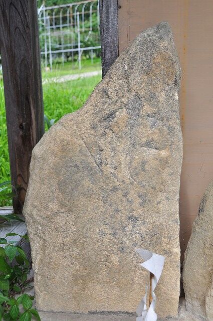 鎌倉時代後期の正和5年碑。高さ125cm、幅58cm、白色安山岩。上部の月輪にアーンク(胎蔵界大日如来)、その下に紀年を刻みます。