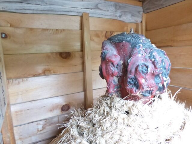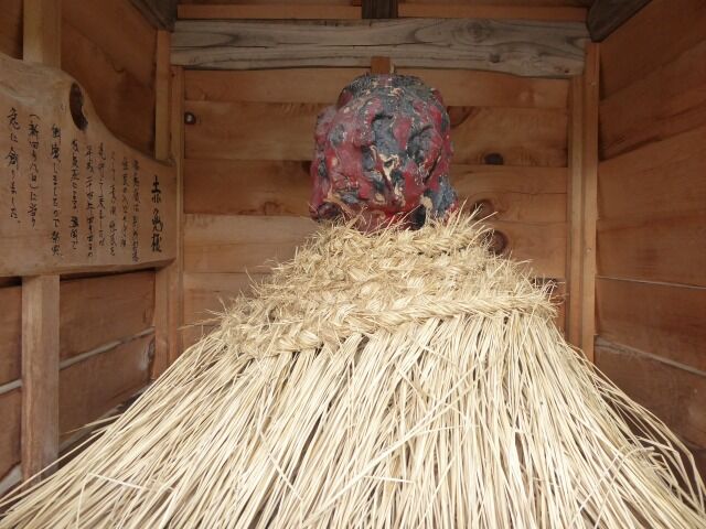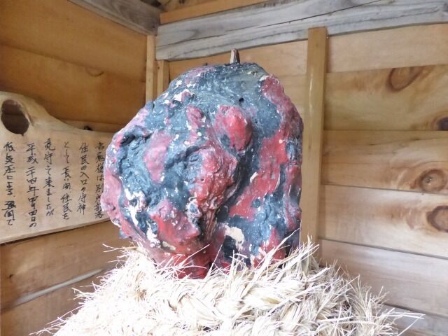 赤鬼様…『赤鬼様は別所部落住民の入口の守神として、長い間、住民を見守って来ましたが、平成24年4月4日の低気圧による、強風で倒壊しましたので祭典(新4月8日)に当り、急に創りました。資材青森ヒバ材。大工:畠山正一郎・畠山保行。解体修復手伝い:畠山正一郎・黒田信行・畠山豊史・黒田重勇。イネわら:畠山三男。ケサ組(あみ):黒田ヤス・佐藤チエ・佐藤ヒサヱ。平成24年4月7日(修復)』