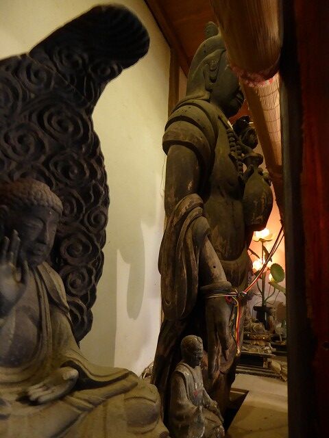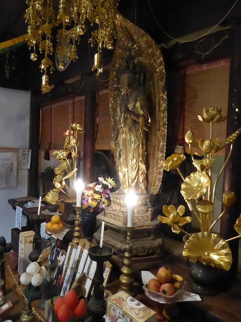 平安時代のご本尊3.6mの観音さまは御簾の奥です。簾の裾から礼拝下さい。