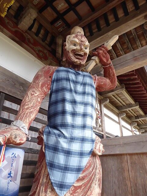 仁王尊。大物忌神社仁王門(隋神門)から移された仁王尊像の股くぐりをすると、無病息災や、はしかが軽くすむ等の利益があるとされています。