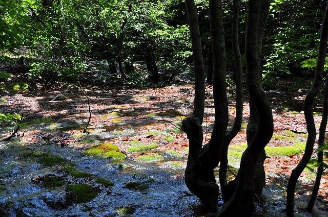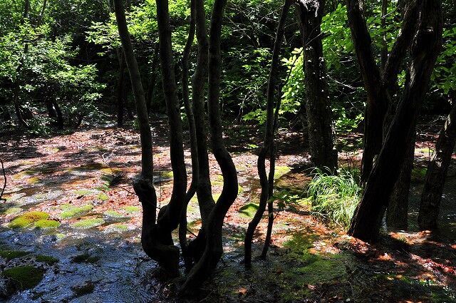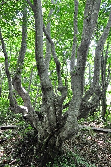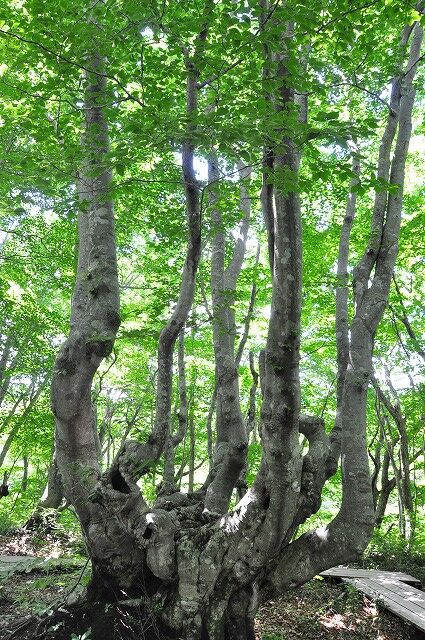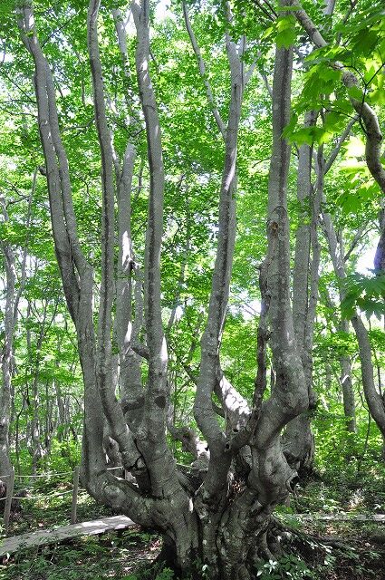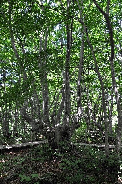 出つぼから折り返さずにブナ奇形木地帯を通って、湿原植物群生地を囲む遊歩道を一周しております。