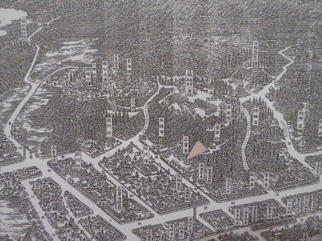 花輪通要害屋敷地図(明治2年)と現在地(赤丸)。