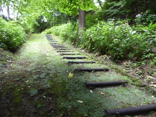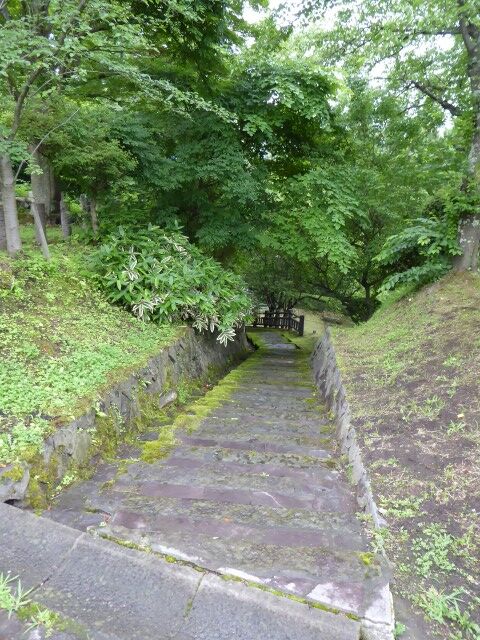 ゆるぎ館(搖ぎ館・花輪城北郭の外郭)への階段。階段上がゆるぎ館。