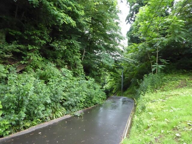 こちらも館坂方面へ下る道かな。雨が降っていた上に結構な急勾配だったので未確認。
