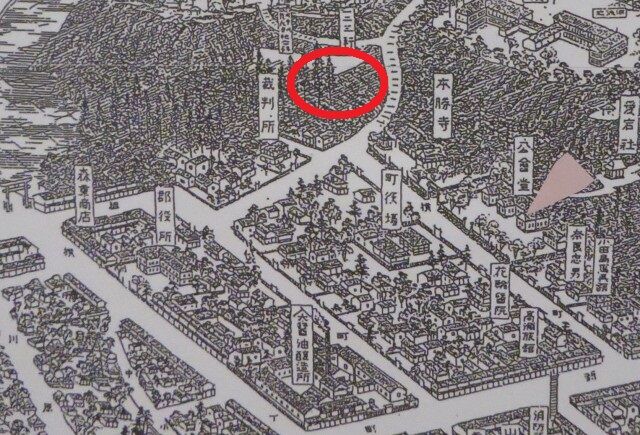 こちらの地図を見ると、途中に水天宮があります。