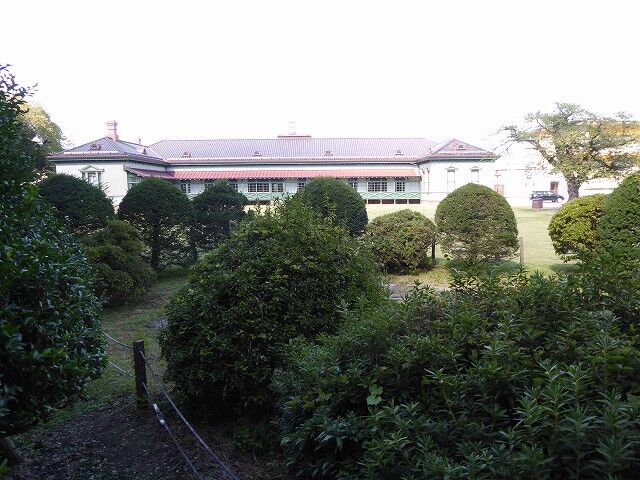 遑止園は明治時代の旧陸軍弘前偕行社の建物をはさんで前庭と後庭にわかれる大石武学流庭園。