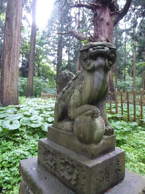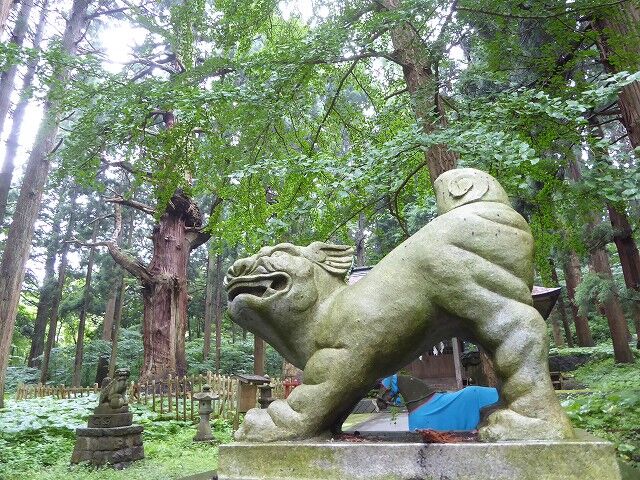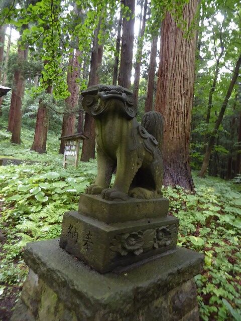 狛犬一対(巌鬼山神社千二百年祭記念、平成8年8月17日十腰内村中奉納、施工業者:板柳町安田石材㈱)