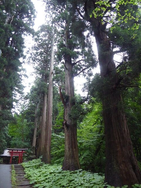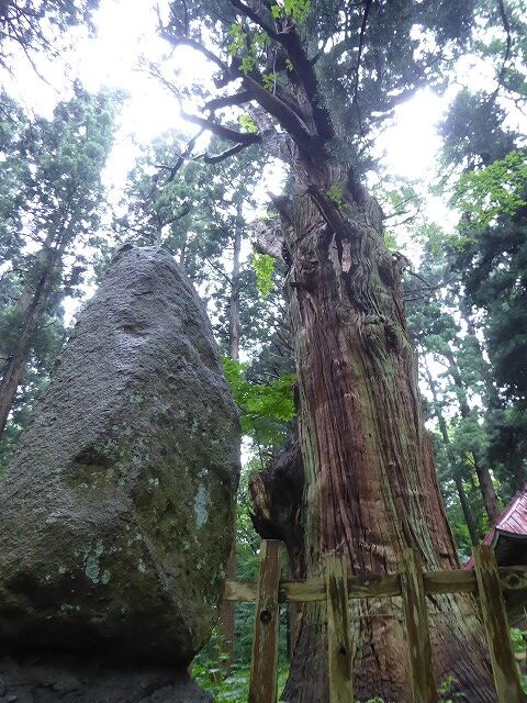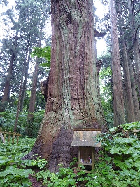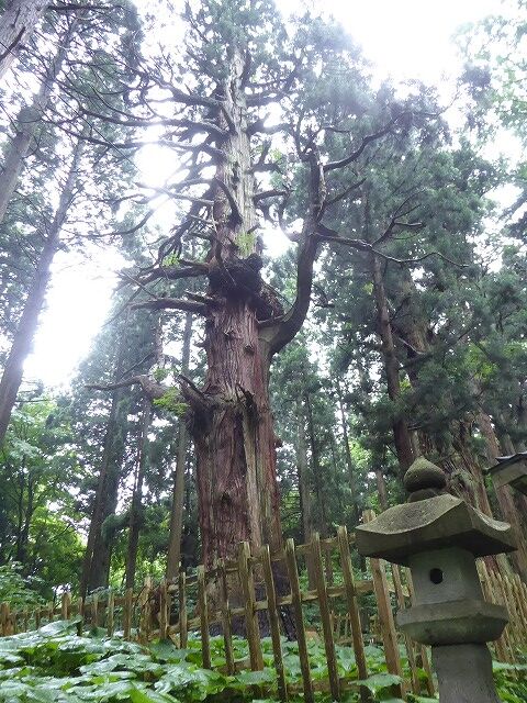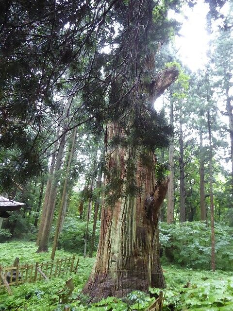 県内最大と言われる推定樹齢1000年以上の大杉2本があり、実測値でそれぞれ高さ43m&42m、幹周9.96m&8.95m。
