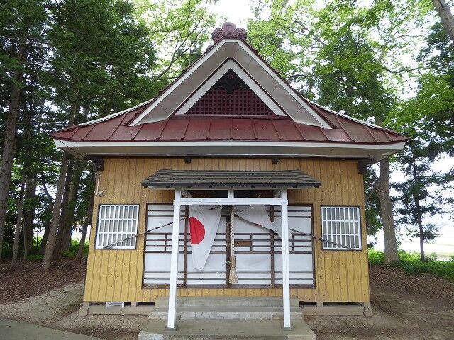 日沼村は大正11年8月まで境関村富岳神社の氏子でしたが、同年8月21日に富岳神社の氏子区域を離れ、三社神社の氏子区域に変更する儀が承認。よって、正式にはそれ以降、三社神社が日沼村の産土神となりますが不明な点も多いといいます。ちなみに富岳神社(御祭神大己貴神、少彦名命)は古来より薬師宮と称え、境関・日沼・大袋の3ヵ村で建立し、3ヵ村の産土神として崇敬されていました。元禄2年(1689)旧号富岳館内にある稲荷林に奉遷して再建したものともいわれています(元は神社北後方の大袋村寄りの平川対岸薬師淵にあったといいます)。その後、菅野・林子野木が加わり、5ヵ村の産土神として崇められ、嘉永年間に社名を大汝少彦名(おおなむちすくなひこな)神社と改め、明治3年神仏分離令により富岳神社と改称。三社神社の由緒については不明な点も多いのですが、言い伝えや記録などによりますと、般若寺(現在は中里町富野にあり、かつては猿賀十二坊の一つで天台宗※般若寺跡)は往古、日沼村高田と林子野木の中間にあったといわれ、この般若寺の塔頭に、薬師堂やその他の寺庵があり、天台宗の修験者たちが出入りしていたと考えられます。古記録によりますと、日沼高田に建保3年、少彦名大神(薬師堂)の堂宇を建立祭祀していましたが、天和2年(1682)7月の大風で倒壊。日沼村ではこれを再建する力がなく、当時日沼館(富岳館)に居館していた津軽藩の吉町弥左衛門がこれを富岳館に再建し、明治4年の神仏分離令の際に富岳神社となった(猿賀十七組内地誌編纂調)とあり、大正11年8月21日まで日沼村も氏子でした。日沼村では当時からその跡地に小さな祠堂を建立して内々お祭りをしていました。これが樋口甚左衛門邸内の少彦名神社(薬師宮)であり、樋口甚左衛門の先祖(大光寺城主滝本播摩の家臣三郎右衛門)が移住する以前から存在したことになり、般若寺薬師堂との関連が浮かび上がります(一説には浪岡北畠家の残党である葛西伝兵衛家の先祖とも関連があるといいます)。一方、葛西利三郎(理右衛門の直孫)屋敷内にも大汝少彦名神社(薬師堂)があり、明治18年9月14日和徳村高山家で祀っていた大汝少彦名大神を移遷したものです。以上、日沼村には薬師様関係が2社あり、双方張り合っていたので、猿賀村長小林賢之助の斡旋で話し合いの結果、大正3年7月10日、御祭神を前記の五神として現在地に奉遷し社殿を新たに造営。大正13年5月15日に村社に列せられ、翌6月24日神饌幣帛料供進神社に指定。昭和22年に宗教法人令による宗教法人三社神社となりました。※『津軽史事典』では「堀越組境関 貴野宮 境関・日沼・大袋三ヶ村にて創立(愛宕さまと同じ)」とあります。