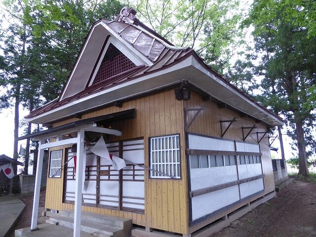 草創年月日不詳。旧村社。御祭神は天照大神、誉田別命、天児屋根命(以上三社)。少彦名命、大己貴神(以上相殿神)。祭日旧5月8日(現6月8日)。