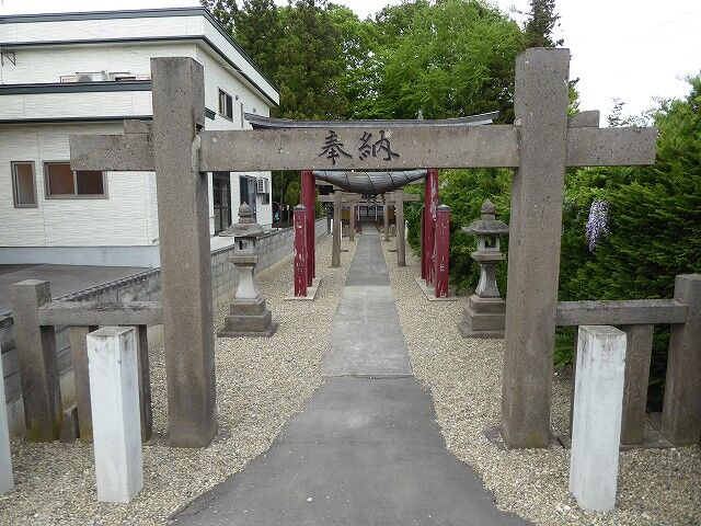 青森県平川市日沼高田。社号標(大正13年6月8日村中建之、78歳文堂書)。