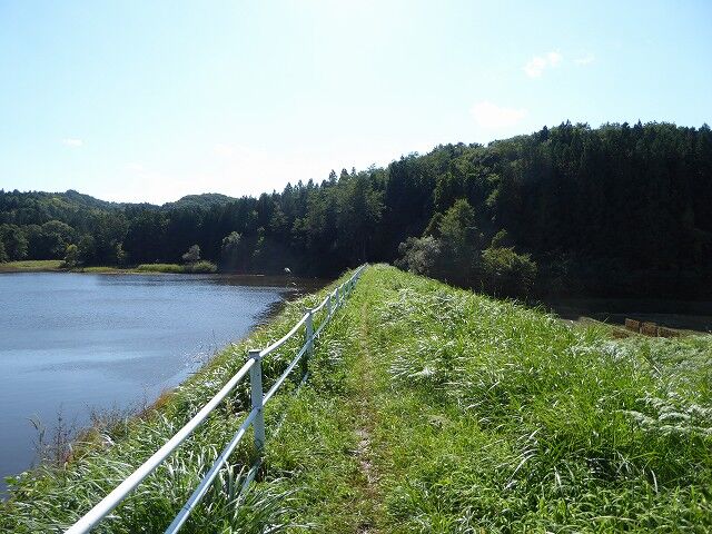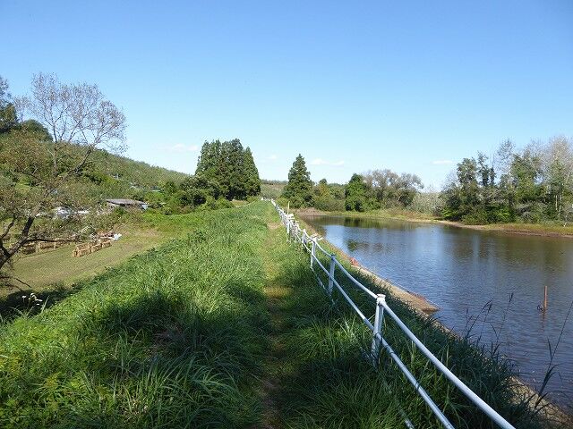 溜池の土手を歩いています。