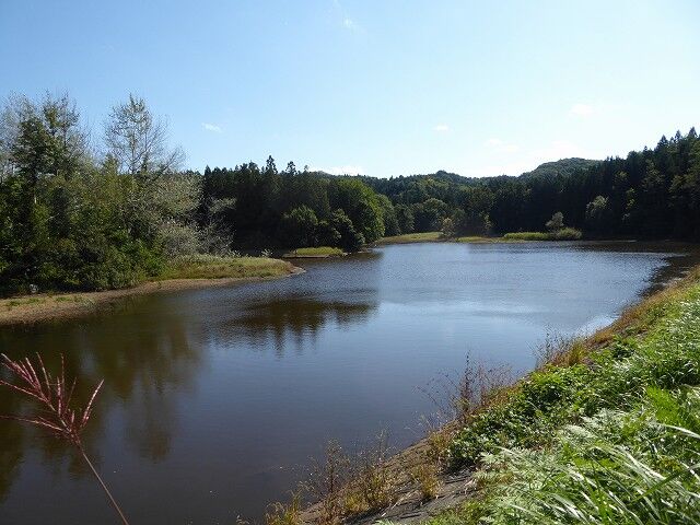 鶴ノ子沢堤の土手からの景色。