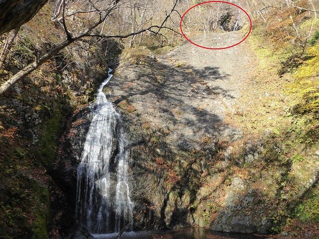 小又川上流部の枝沢に懸かる上下二段に分かれた滝で、上段の滝は落差40mの分岐瀑、下段の滝は落差18mの分岐瀑。