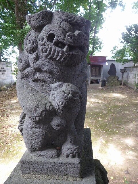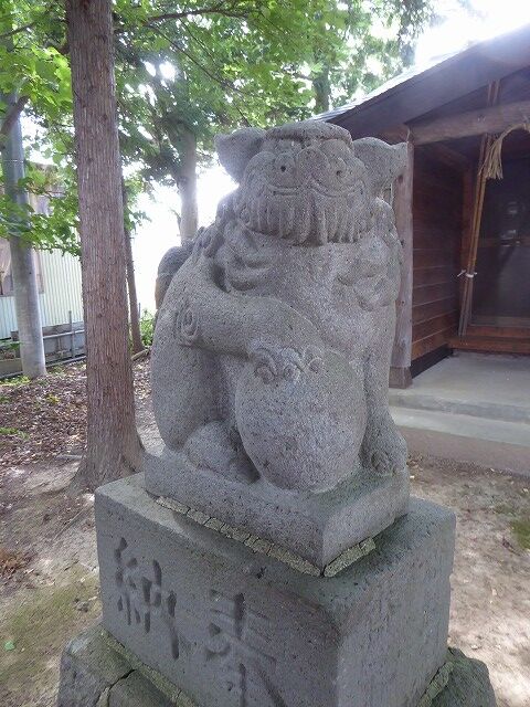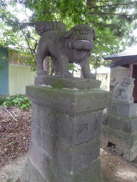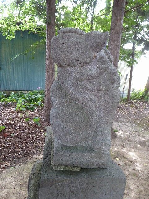 狛犬一対(明治27年12月16日、岩館村中、発起人、中畑萬吉、太田岩次郎他22名、石工林安次郎)。斎藤甚助の名も刻まれております。
