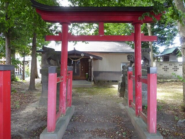 脇社の千手観音です。ブロック塀に囲まれています。下調べでは北樺太占領記念の手水鉢の他に、石造鳥居(昭和12年8月12日、笹森甚助)もあるはずでしたが存在せず。