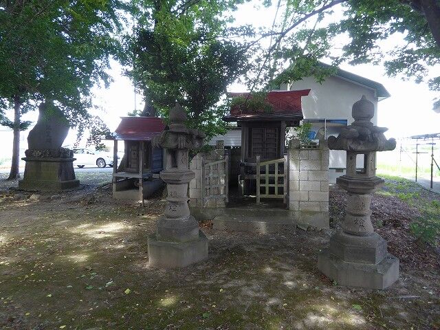 塞神三柱(慶応4戊辰年3月12日村中)の道祖神。領内の守護神であり、外から侵入する妖魅悪に対し、八衢比古、八衢比売、久那斗神の三柱を祀ったもので、幕末に国学者平田篤胤が復古神道の立場から庚申信仰を平安初期の道饗神に塞神の字をあてて比定したものともいわれています。