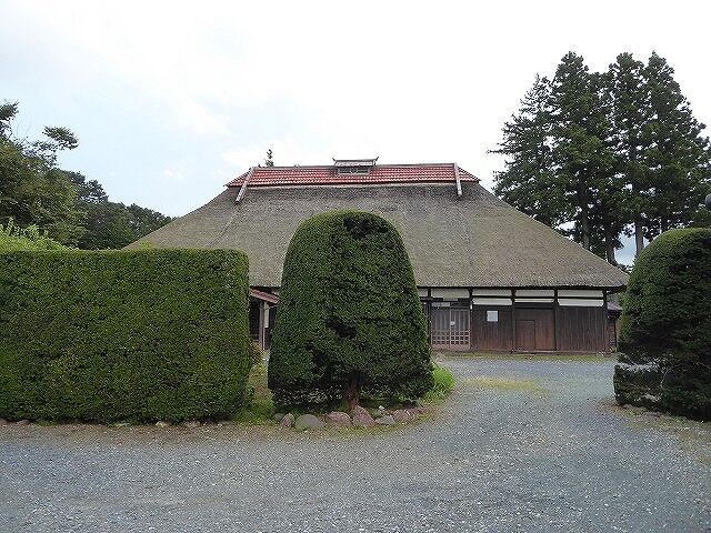 江渡家住宅(国指定重要文化財建造物)…『江渡家住宅は天明年間(1781~88)に飢餓救済事業として建築。桁行十二間半、梁間六間、八十五坪、寄棟造茅葺で四方せがい造りとして、北正面に玄関を付属させている。平面は西端三間分を土間とし、それに続いて「じょい」「仏間」「だいどころ」「いま」の住居用の各室を喰違い四間取りに配し、その上手には接客用の座敷を整形四間取りに並べている。「だいどころ」のほかは各室とも竿縁天井を張り、畳を敷く。「じょい」廻りには二間と二間半通しの成の高い指物を用い、「ざしき」境には指物に長押を打つなど新しい手法がみられる。』