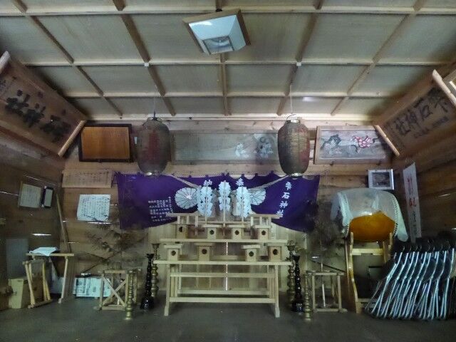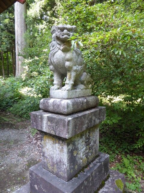 由緒(岩手県神社庁)より…『大昔、西根の山に不思議な清水の湧く音がしていた。柴刈る翁が「シズクイシ」との奇音に近づき見ると、老杉の根元の岩の中の銚子に似た口先から清水が「シズクイシタン」と奇音を発し岩石を打っていた。それ以来この地を滴石と呼ぶようになった。後凡そ千年前、萩平の八代家で神祠を建て滴に光る十三夜の月を拝して月読神。岩清水に豊秋津彦命を祀り、「タンタン様」と称えて崇敬した。その後、素戔嗚尊を祀り、三神を合祀して雫石大明神としたのが雫石神社の由来である。明治3年(1870)西根村氏神として村社に列格す。』