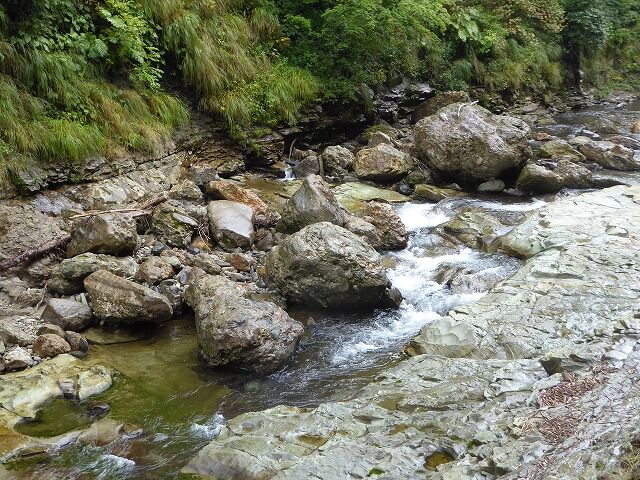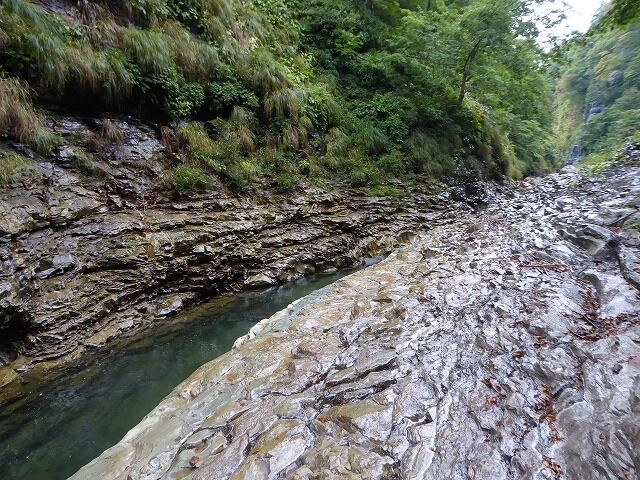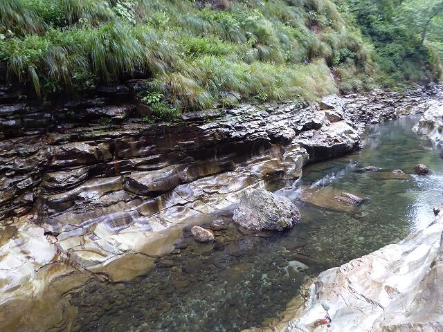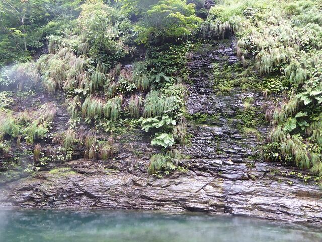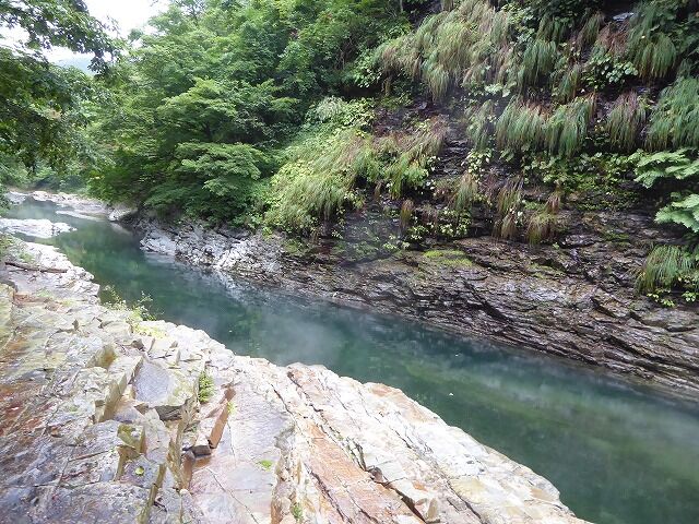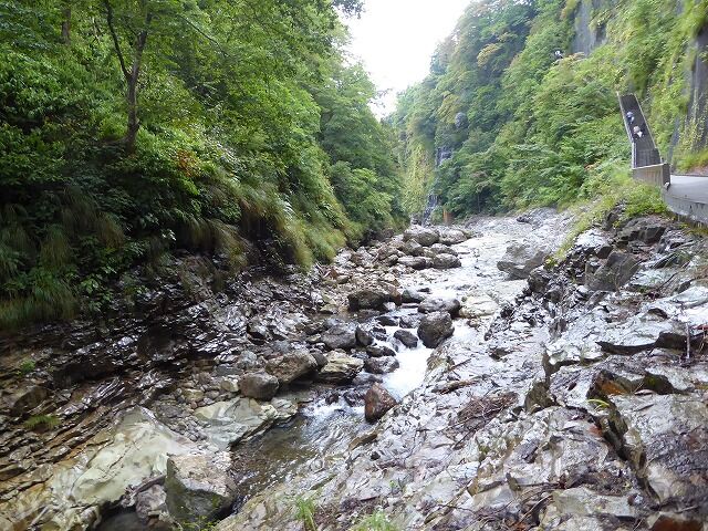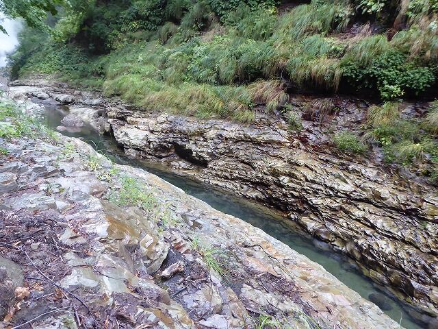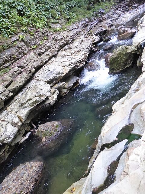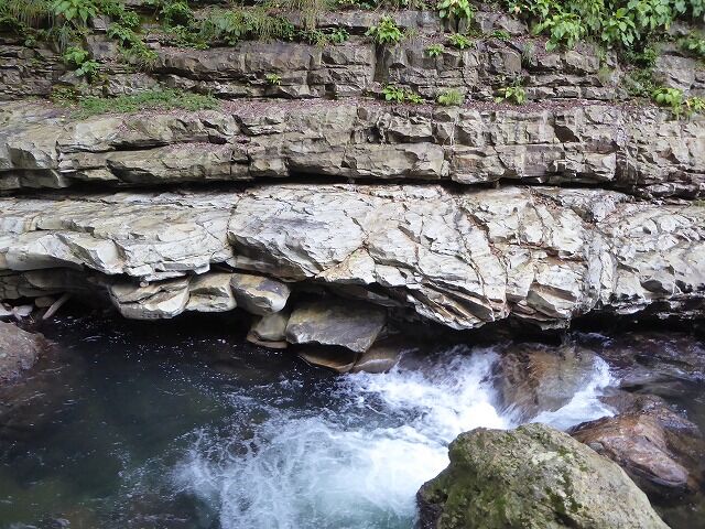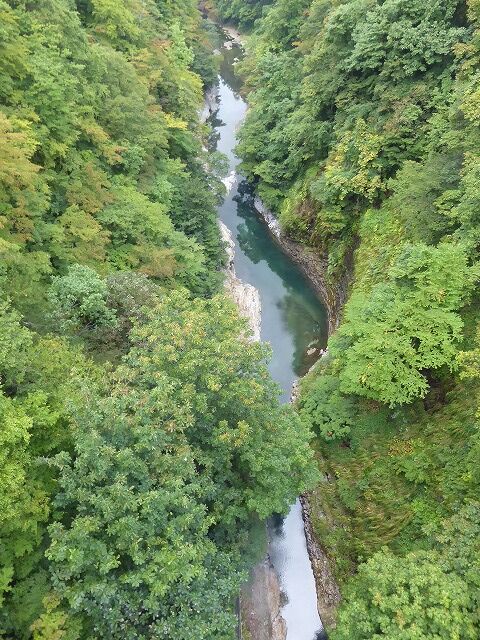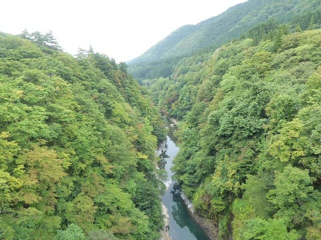 皆瀬川の急流が長年にわたって両岸を深く浸食してきたことがわかります。
