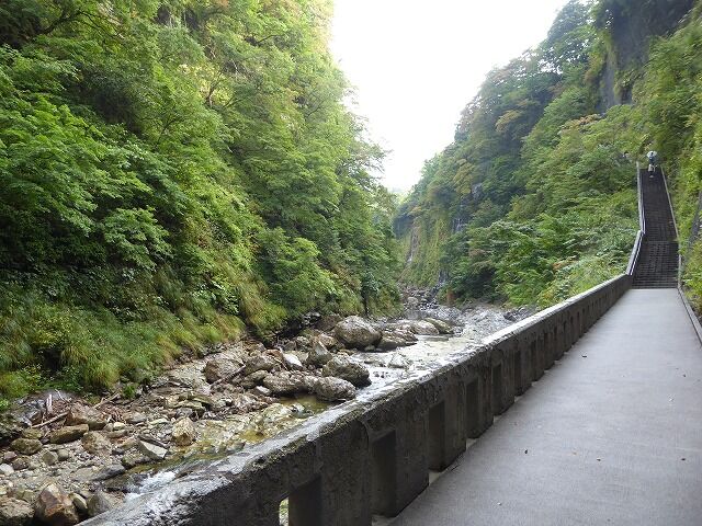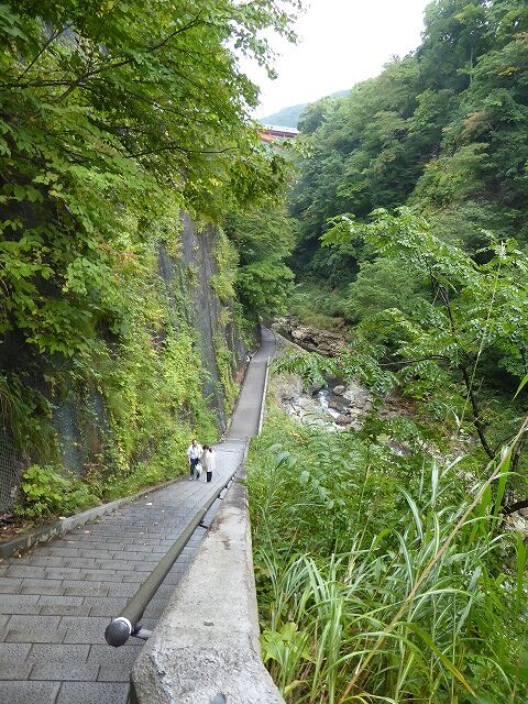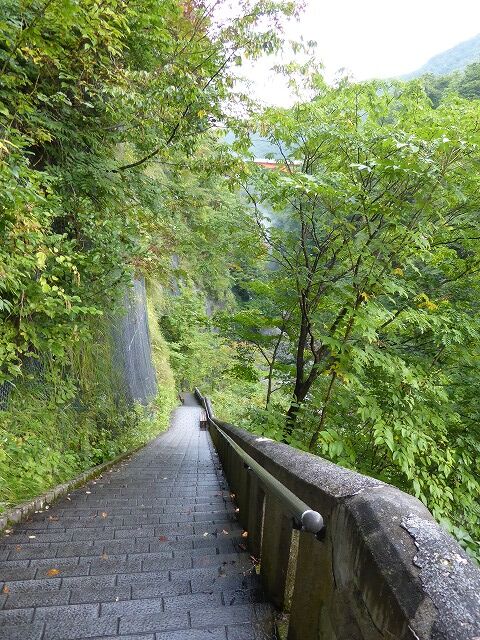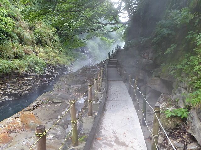 小安峡大噴湯へは約400段(800m・標高差60m)の階段を降りていきます。