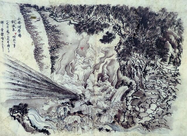 菅江真澄が描いた大噴湯「勝地臨毫 出羽国雄勝郡」より。