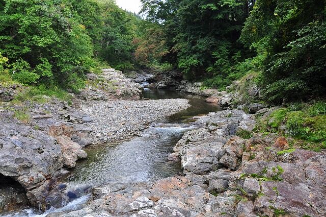 秋田県湯沢市皆瀬湯元。皆瀬川。