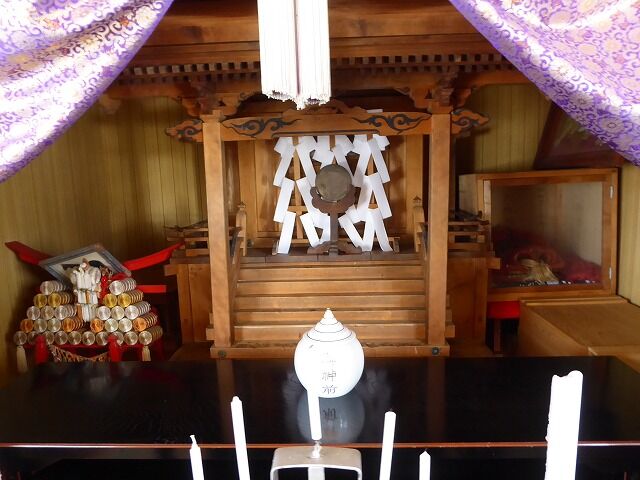 本殿真横には獅子頭(大権現様、昭和57年正月奉納)が安置されています。