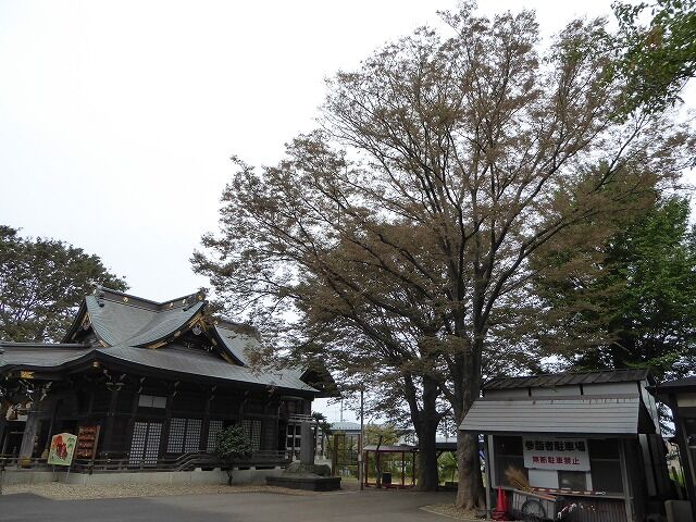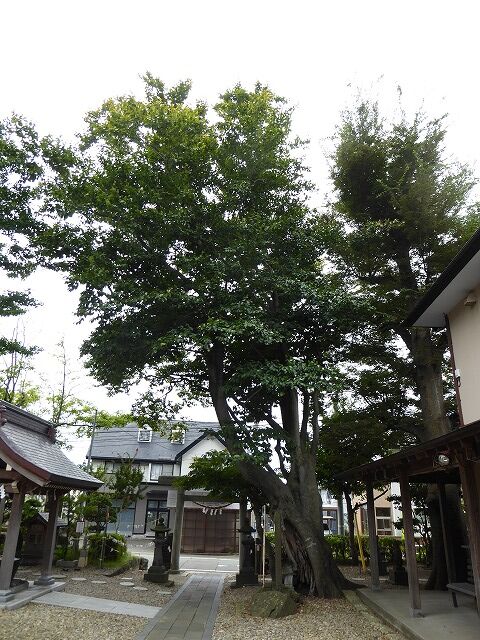 保存樹…『この樹木は、公園都市秋田市をつくる条例により指定された保存樹です。貴重な財産を市民みんなで大切に守っていきましょう。◆樹木名…霊水の大木(ぶな)樹齢(推定)150年。◆由緒…神社の当初創立は不証である。桓武天皇の延暦年間、坂上田村麻呂が髙清水丘に本陣をはって夷賊を討ち、大勝したが、その報恩のため社を再建したという。境内に一大異木があり、其名を知らず、将軍の杖より成木した云々の伝説がある。本樹の二又より清水が湧き霊水の木とも称したが、昭和12年頃二又の一本枯死し、霊水もとまったと伝えられる。◆指定番号第21号◆昭和49年10月11日秋田市』※その他公式HPでは槐(エンジュ)や狐の剃刀(キツネノカミソリ)も紹介されています。