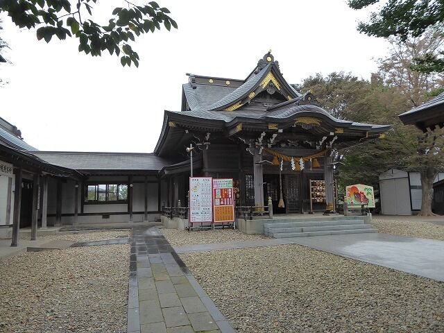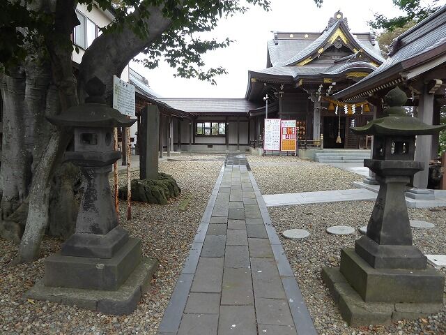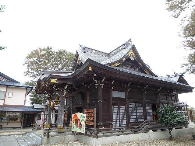 社殿(29.18坪)、本殿(5.34坪)、幣殿・拝殿・向拝(23.84坪)、客殿(22.53坪)、玄関・回廊(13.25坪)、合計(64.96坪)。社殿は向拝・拝殿・幣殿と本殿が繋がった権現造り。本殿は、神明造り、千木内削、鰹木六本、屋根銅版葺き、軒付けは、ネズコ材を積板した木羽板葺き風仕上げになっています。幣殿・拝殿は入母屋形式、向拝は唐破風軒。後面は切妻形で本殿に繋がっています。屋根銅版葺き、軒付け五段仕上げ。客殿は切妻造り妻入り、回廊・玄関は切妻造り平入り、屋根は共に銅版葺き。