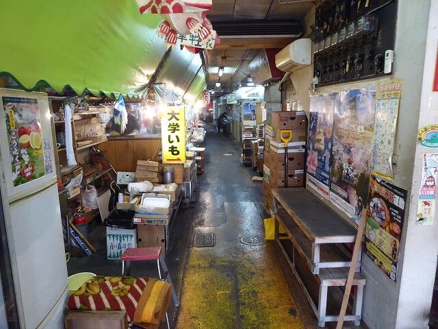 市場の顔ともいえる人気の大学いも。※まだ営業されていた頃の写真です。現在は移転しています。