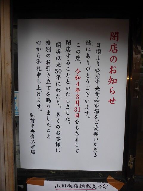 市場を運営する弘前中央食品協同組合の熊谷孝志理事長によりますと、建物の老朽化が進んで10年ほど前より改修や立て直しの計画を模索していたそうですが、組合の会員が4人となり、商店街離れも進んで新たな入居の目処が立たない中で、新型コロナウイルスの影響により観光客も来なくなったことが追い打ちをかけたようです。
