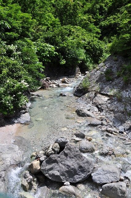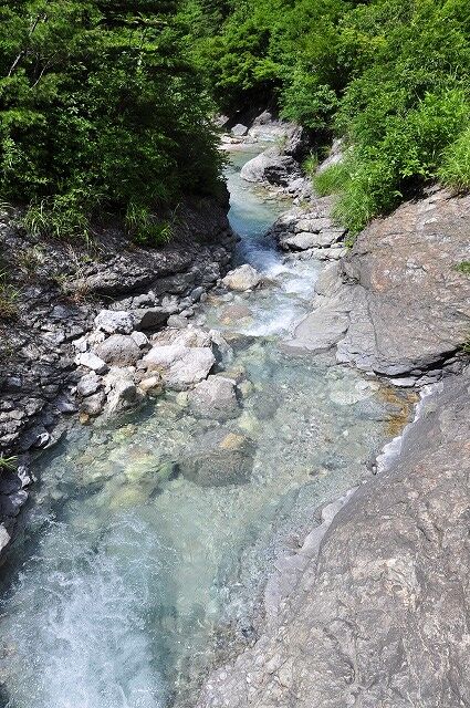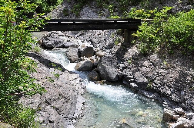 道中で橋を渡りますが、この付近はかなり熱いお湯ですね。気を付けてください。