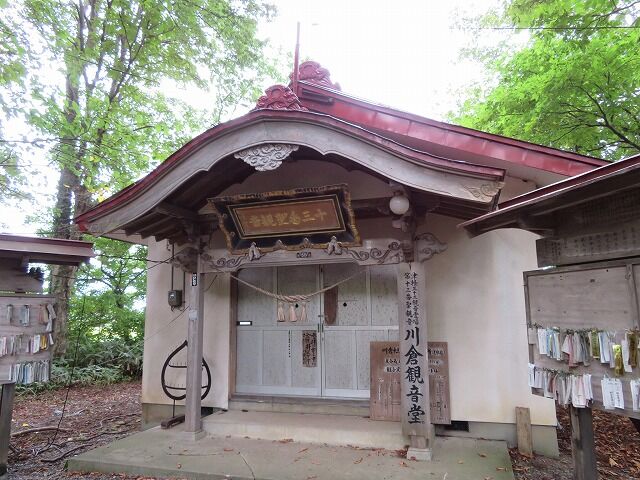 津軽三十三観音霊場第十三番札所。御本尊は聖観世音菩薩。御詠歌「水上はいずこなるらん川倉の耳にこととう山びこの声」