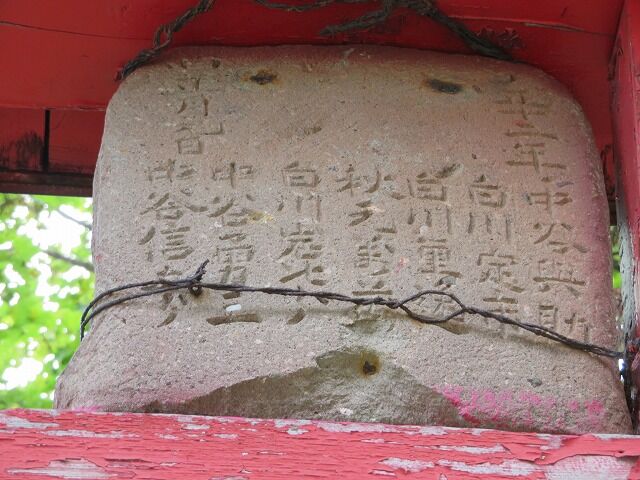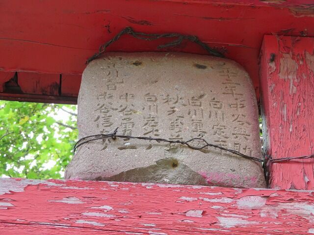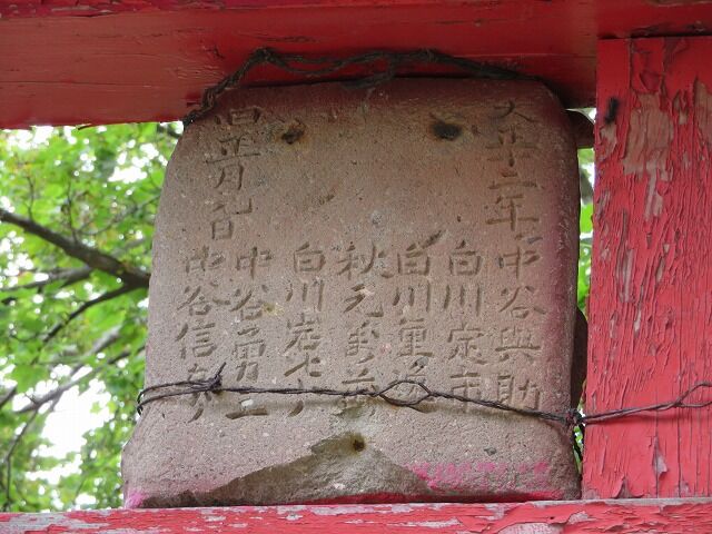 背中…『大正十二年旧正月元日 中谷與助 白川定市 白川重逸 秋元■■ 白川岩■■ 中谷勇三 中谷信■』