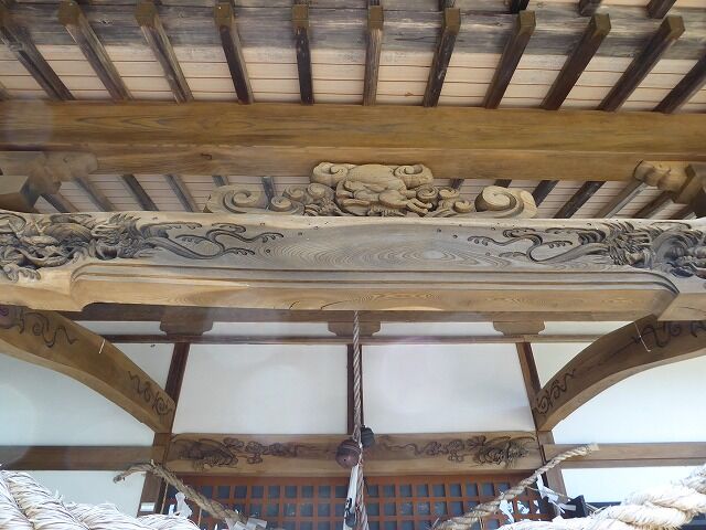 拝殿向拝蟇股・木鼻。蟇股には月と卯。