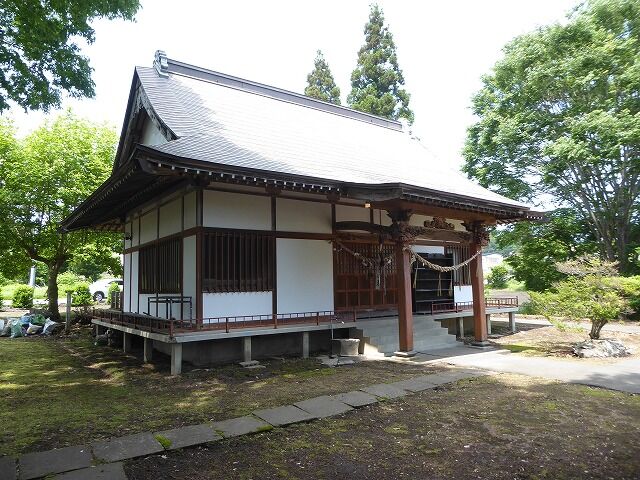 神社庁より…『境内地434坪、本殿4坪、幣殿9坪、拝殿18坪。創立年月日享保二十乙卯年二月とある。明治九年十二月村社指定を受ける。往昔坂上田村麻呂大将軍が東征の際、眼病を患って大いに弱って居た所、村人達の話を聞き、月山神社に眼病平癒を祈願した処、直ちに目の病平穏し東征の目的を果したとの事である。時代が降り南北朝時代、陸奥の國司北畠顕家氏が國内巡視の折、矢張眼病に罹り、月山神社に平癒祈願したところ眼病は拭ふが如く平癒した、と言い傳へられており、霊験著しきものがあります。依って地方民尊崇の的になって居る。』