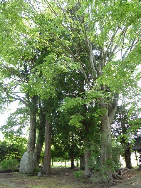 中野月山神社…『祭神は月読命(つくよみのみこと)。勧請の由来は不明ですが、藩政期には薬師如来と合わせ祀られていました。この社は中野郷の産土(うぶすな)お薬師様として氏子の厚い信仰で守られてきました。産土神様は、四つ足、二つ足のものは口にしなかったので、その御利益で村には一人の盲人もろうあ者も出なかったということです。明治4年廃仏毀釈により、薬師如来は天徳院に移され月山神社と改められました。また、眼病に効き目のある神様として、村人の信仰を厚くしました。昔、ここに県の天然記念物のケヤキの大木がありましたが、昭和56年の台風15号で倒れ現存しません。』・坂上田村麻呂…『征夷大将軍の坂上田村麻呂が東征の時、眼病を患い、このケヤキの根元に湧く清水で目を洗い全快したので、社殿を再建したと伝えられています。同様に、南北朝時代、北畠顕家(あきいえ)が巡視の時、やはり眼病が全治したといわれます。』・子供と遊ぶ神様(産土様)…『昔、村の子供達がご神体を持ち出し、その頭でクルミの殻をつぶしていました。驚いた村人は子供をしかり、ご神体をお堂に納めました。しかしその後、村人は病気になってしまいました。子供と楽しく遊んでいるところをじゃまされたご神体のおとがめだったということです。』