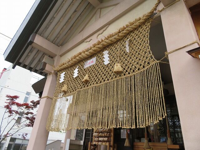 じゃんばら大注連縄。津軽地方で多くみられる「じゃんばら」と呼ばれる注連縄。「じゃんばら」とは邪を祓う「邪祓(じゃばらい)」が訛って転化したものといわれ、幾何学模様をした大注連縄はあらゆる災厄を祓い除けると言われています。廣田神社のじゃんばら大注連縄は日本最大級の大きさを誇り、男綯いと女綯いを組み合わせた特殊な縄の編み方をしており、くぐることで夫婦和合の御神徳もあるとされています。【伝承】…『十数年前。三厩村より参拝に訪れた子供が手水を済ませて神殿前の鈴を鳴らした所、突然紐から外れて大怪我をしてしまいました。後日、宮司がお見舞いに行くと何かに怯えているような口調で、神社の周りに不吉な悪霊がいると騒ぎ出したため、急遽神事を執り行い祓い清めました。さらに、再び不吉な禍いが起こらないようにと宮司が兼務している瀬戸子八幡宮の氏子に依頼し、邪祓を語源とするじゃんばら型の大注連縄を作ってもらいました。すると、程なくしてその子供も元気に立ち返り事なきを得ました。以来、不吉な事が起こることもなく、大注連縄をくぐりお参りすると、その複雑な文様で災いを絡め取り、心身が浄化されるといわれるようになりました。そのため、現在でも3年に一度、廣田神社の崇敬団体である敬神会より奉納されるようになりました。』