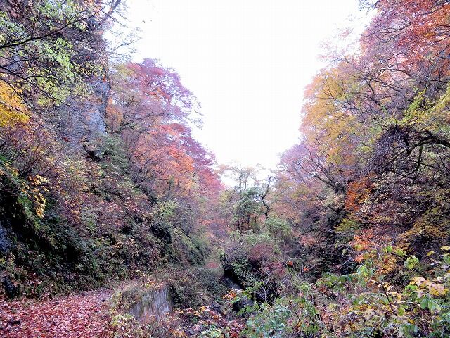 峨瓏の滝のすぐ上流にある峨瓏峡は、清流を中心に両壁は絶壁が続き峨瓏の意に相応しい絶景。峨瓏の滝から滝の沢林道を歩くルートで向かうと峨瓏峡の途中に白糸二段の滝があります。